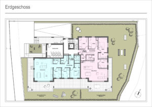 Dank der aufgelockerten Anordnung ist eine optimale Belichtung der Innenräume gewährleistet.