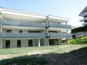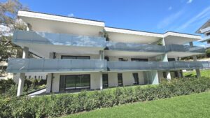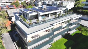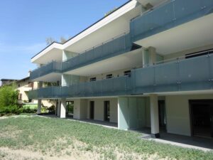 Das Mehrfamilienhaus fügt sich sehr schön in die Umgebung ein. Die Architektur besticht durch modernes und interessantes Aussehen.